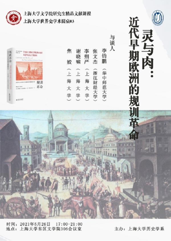 2021年5月26日,上海大学文学院邀请华中师范大学李钧鹏教授做了题为“灵与肉——近代早期欧洲的规训革命”的讲座,并邀请浙江财经大学张文杰、上海大学李朔严、谢晓啸、焦姣参与圆桌讨论。上海大学文学院和社会学院的30余名师生参与了此次会议。本文系发言整理稿。现标题为编者所拟。