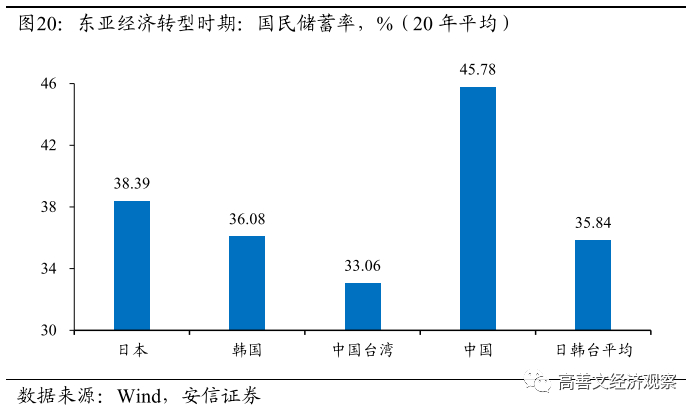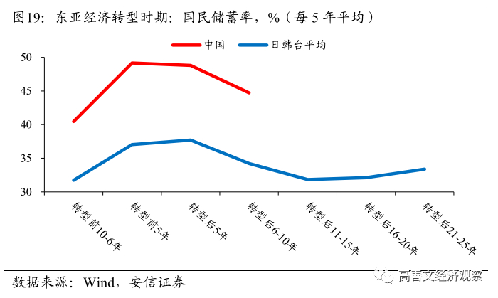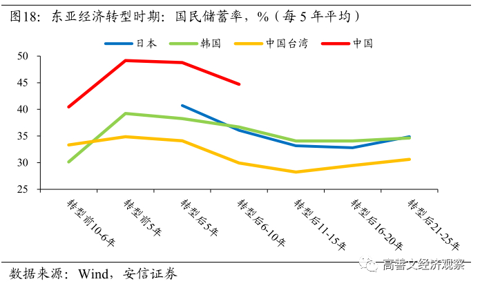 从东亚其他经济体数据的长期走向来看,储蓄率是一个相当缓慢的变量,因此储蓄率的大幅下降也是一个小概率事件。