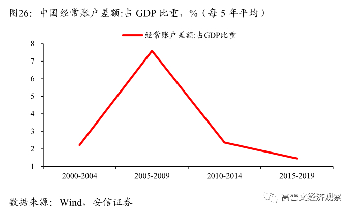 在这些因素的共同作用下,如图26所示,中国的经常账户很快恢复到相对平衡的水平,进而使得其对货币政策和利率水平的抑制性影响消除了。在此条件下,利率出现了补偿性的上升。
