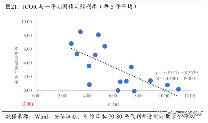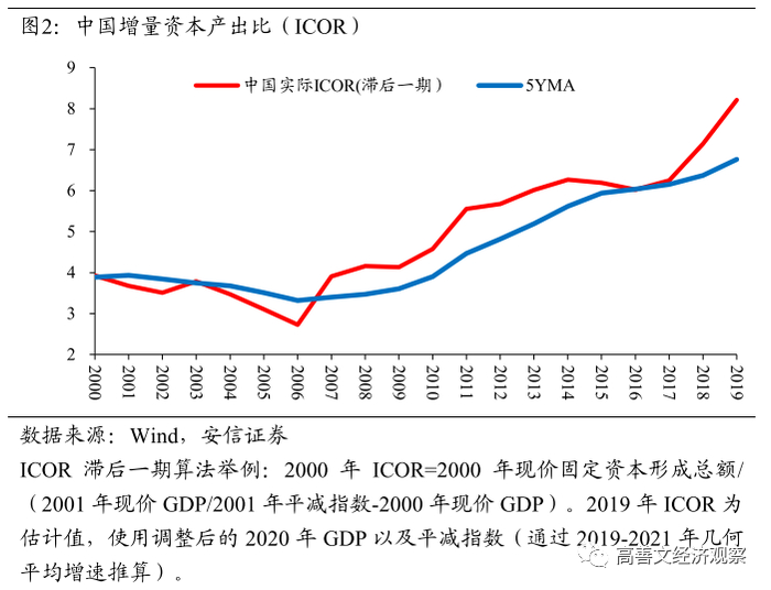 考虑到数据可得、计算简洁、以及跨国可比等特点,我们计算了一个重要的指标:增量资本产出比(Incremental Capital-Output Ratio,ICOR)。