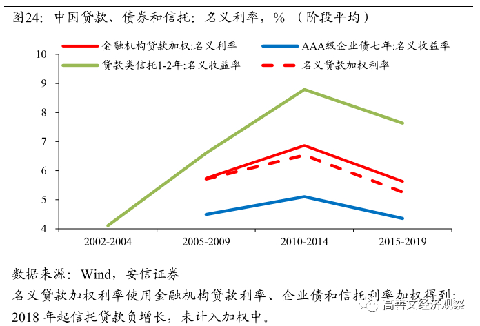 众所周知,中国贷款市场上存在很多子门类,例如企业债、金融机构贷款、以及信托等。考虑到中国在2000-2005年期间还存在广泛的利率管制,因此我们观察的数据集中在2005年以后。