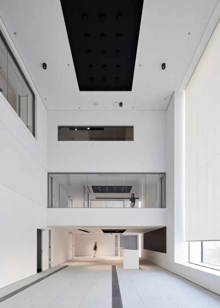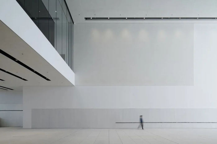 建筑表层、地面与延伸至滨江的景观,都用山东的白麻大理石打磨,建筑、大地、水面由此融为一体。