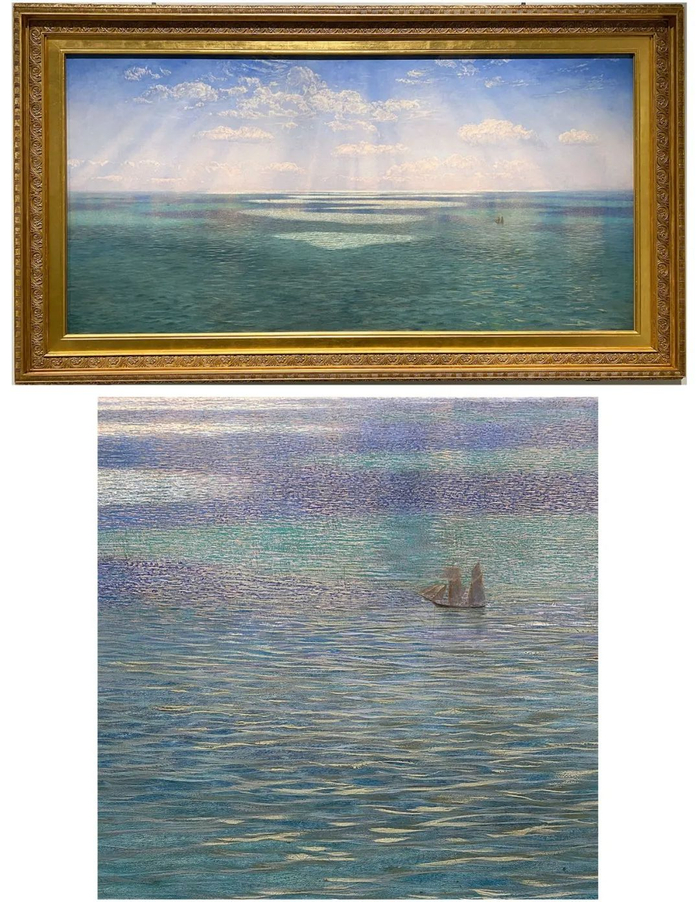 所有作品以“光”为主题,从18世纪,一直延伸到当下。从浪漫主义画家对光影的掌握,印象派画家以光作为主题的直接描绘,到20世纪初的实验摄影,再到当代的沉浸式光影装置。