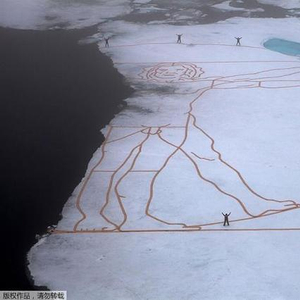 资料图:艺术家约翰奎格利在北极海冰上制作了一幅达芬奇名画“维特鲁威人”,以此呼吁人们关注自然,关注气候。