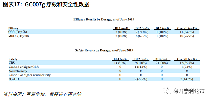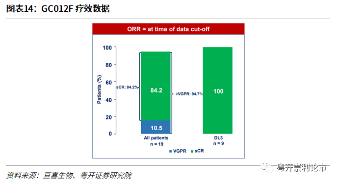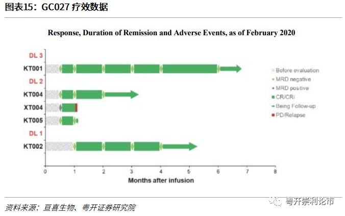 疗效数据:Ⅰ期临床试验表明,截至2020年2月,5名受试者ORR达100%,MRD-CR达60%。