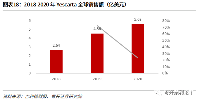 (2)商业化进展滞缓。药品成功的商业化是企业长期利润的来源,但CAR-T细胞疗法目前呈现出叫好不叫座的尴尬局面。尽管全球首个接受CAR-T细胞疗法的儿童Emily的故事已经深入人心,但上市CAR-T细胞疗法惨淡的销售额与企业巨额的投资之间呈现出的巨大鸿沟令投资者对这一赛道充满怀疑。2017年8月,吉利德以119亿美元收购Kite Pharma,并获得Yescarta的权益。Yescarta上市后,2018-2020年销售额分别是2.64亿、4.56亿和5.63亿美元,3年时间119亿的投入仅换来12.83亿的收入,即使成本的回收仍显得遥遥无期。