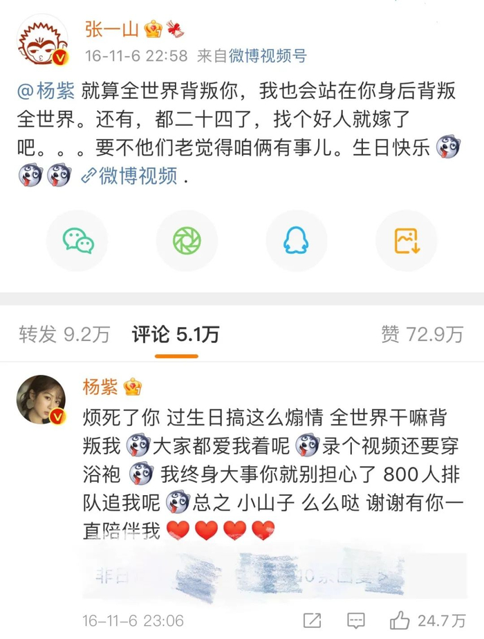 身处复杂的娱乐圈,成名后感情的纯度太低,张一山与杨紫却在对方或高光、或失意的时刻,都陪伴在彼此左右,依赖又独立。