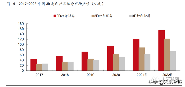 3.1.1、3D打印设备占主导地位,全球竞争加剧
