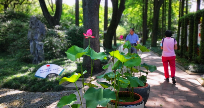 2021年赏荷季,醉白池特别在西门照壁、主干道、读书堂、雪海堂、碑刻画廊等主要景点及各小庭院处布置了一批缸栽荷花,市民游客可以近距离从各个角度观赏。