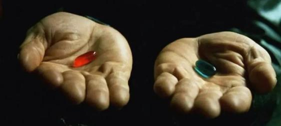 在电影中,哪怕知道选择红色药丸,面对的是各种不堪、对抗、危险,哪怕被人打趴在地上,Neo还是坚定地选择红色药丸。