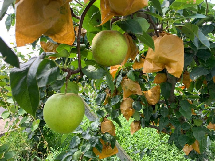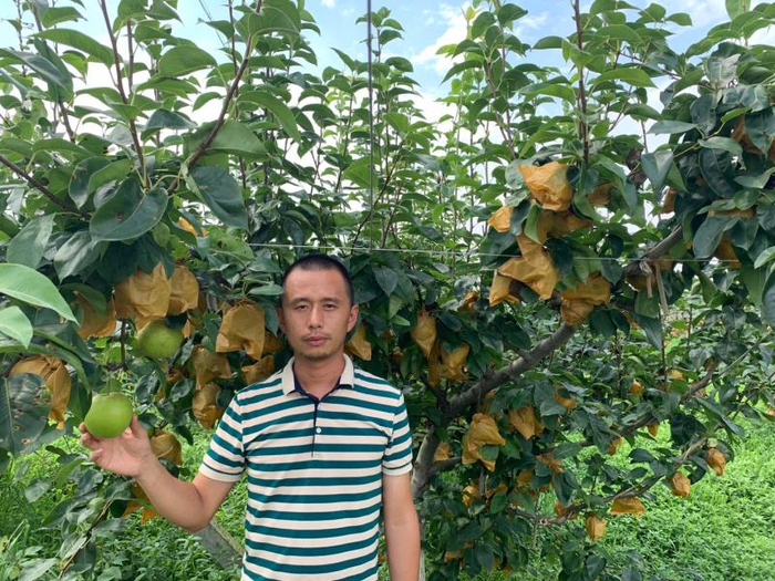 “跟我来吧,带你看看上海本地的苹果。”谢金祥一边招呼记者跟上他的步伐,一边快步往果园深处走。39岁的谢金祥是广东梅州人,曾经是个厨师,2010年到青浦工作,在田间地头和果树打交道已有11年。野龙果业创建于2005年,由台商投资创建,占地360亩,年产优质水果600到800吨,主栽品种是各种梨子——翠冠梨、秋月梨、台湾雪梨等。“我堂叔就是这个基地的投资方,11年前喊我过来帮忙打理,我就过来了,一直到现在。”