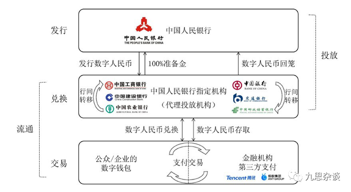 我国央行数字货币体系的核心要素为“一种币、两个库、三个中心”: