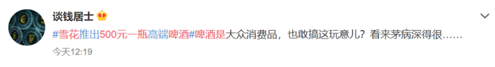 #500元一瓶雪花啤酒是智商税吗#,这个话题在微博的阅读量达21.9万,引发了不少讨论。