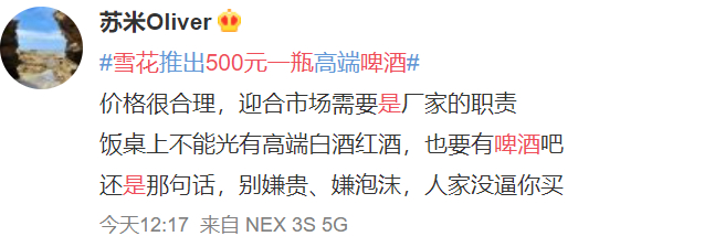 当然也有网友表示对啤酒高端化的认同,认为有人愿意买单就行。