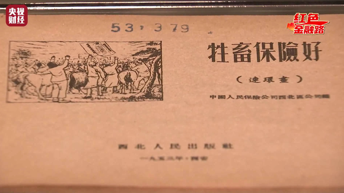 在国民经济恢复期间,人保公司在农村主要开展了牲畜保险业务,还试办了农作物保险。为了让更多的农民参保,工作人员绘制了很多宣传画,保费还可以用玉米等农作物冲抵。