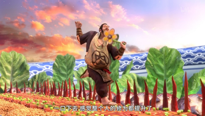 除此之外,第二季动画延续了以往笑点密集、节奏紧凑的风格。无论是突然蹦出的现代词汇,比如“房产证”、“私人助理”、“保密协议”等,还是王胜因饕餮元魂秒变干饭人,甚至还有屠老大因吃完卤肉饭开始美食幻想的搞笑场景,都令人忍不住会心一笑。