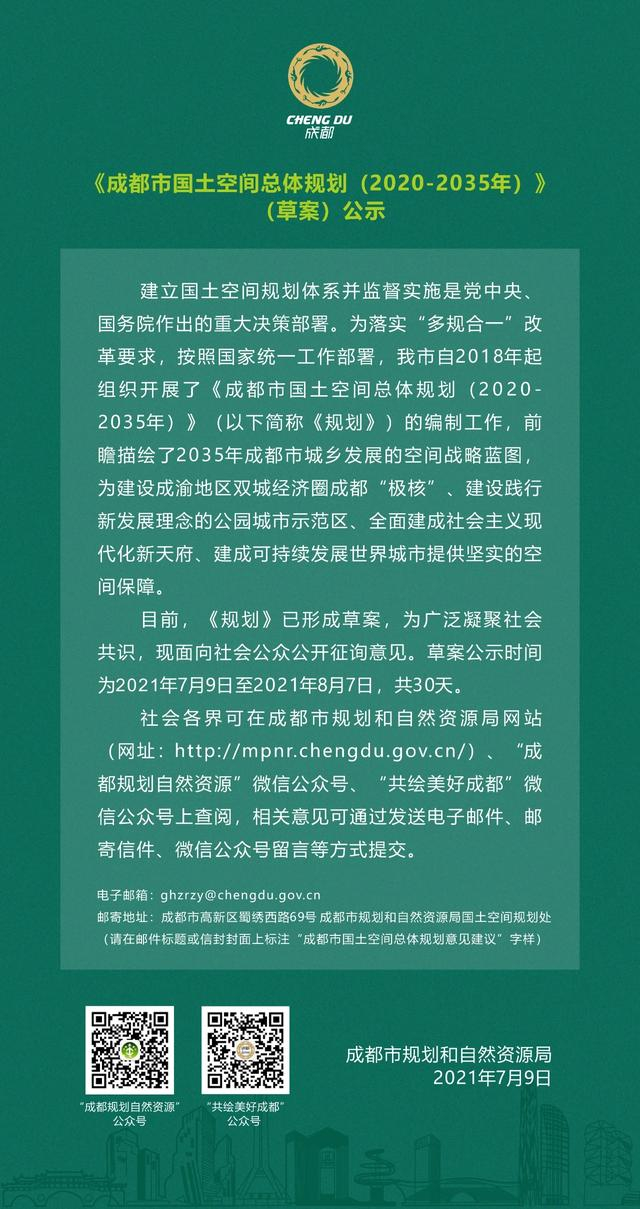最近,成都市规划和自然资源局在官网上公示的成都市国土空间总体规划(2020—2035年)草案引起关注。