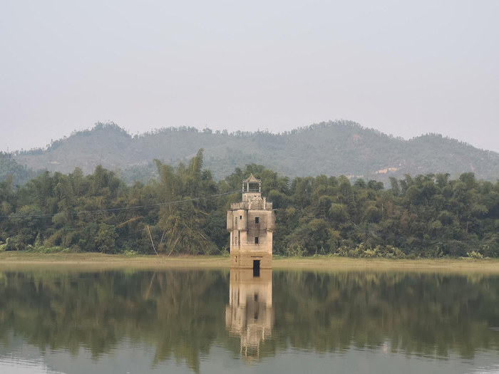 当地村民告诉我,若是枯水期来到这里,便有极大机会见到宗政楼的全貌。此时的宗政楼是“水中碉楼”,枯水期则因水库地面青草茂密,变成“草原碉楼”。南粤水库每逢枯水期,常会变成“草原”,青翠可喜,也是许多徒步者热衷的去处,但“草原”上有碉楼的,仅此一处。