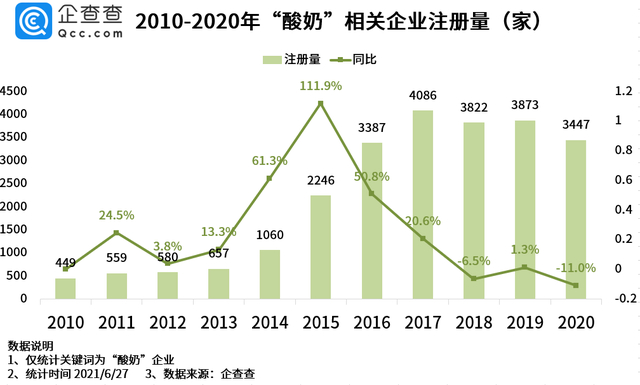 酸奶赛道如日中天。/企查查