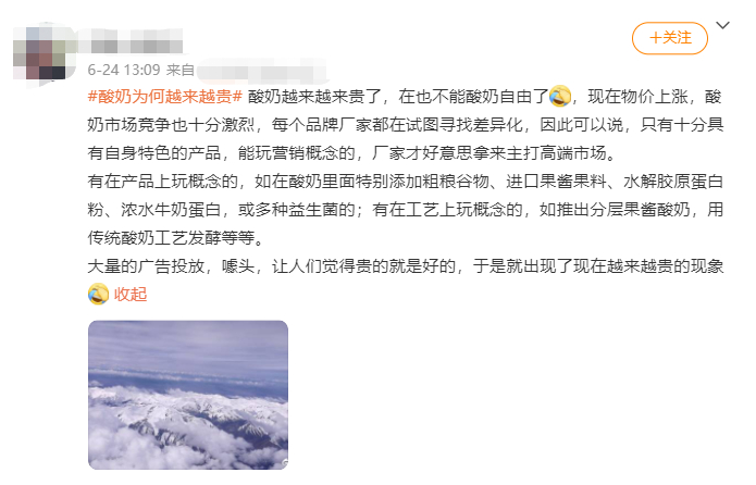 酸奶的涨价并不是一种错觉,“高贵的价格”才配得上“高级的定位”和“高能的功效”。