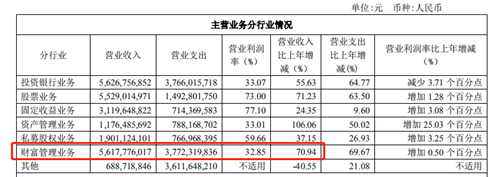 2020年年报显示,公司财富管理业务分部营业收入56.18亿元,同比增长70.94%。