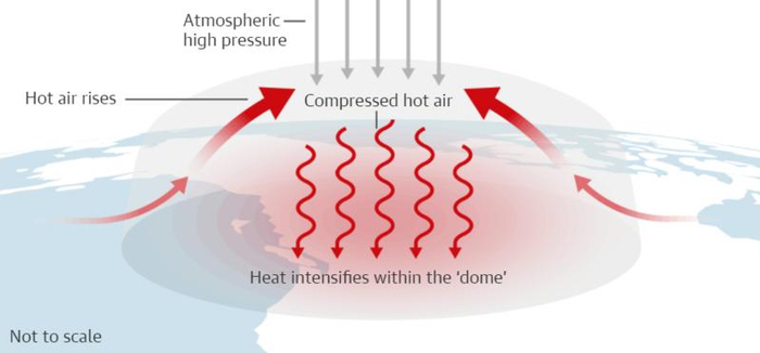 加拿大政府高级气候学家大卫·菲利普斯 (Dave Phillips) 在加拿大CTV的新闻节目中解释了“热穹顶”现象:“它就像盖了一个盖子或一个顶,没有任何东西可以进入,热量也无法消散,只会积聚。”