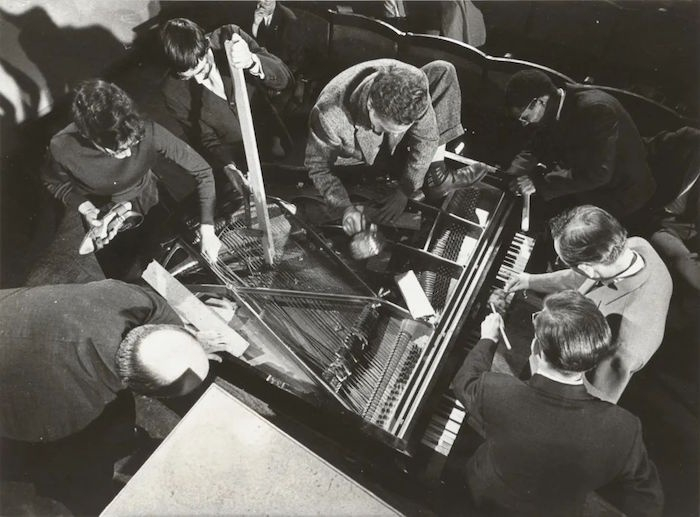 乔治·麦素纳斯与Emmett Williams、Dick Higgins等表演《钢琴活动》,1962年