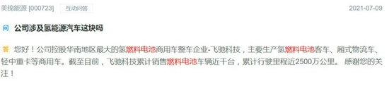 美锦能源称,公司控股的华南地区最大氢燃料电池商用车整车企业——飞驰科技主要生产氢燃料电池客车、厢式物流车、轻中重卡等商用车。截至目前,飞驰科技累计销售燃料电池车辆近千台,累计行驶里程近2500万公里。