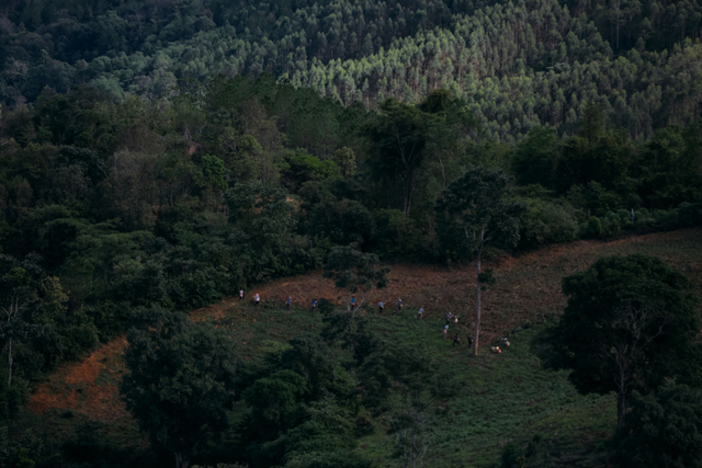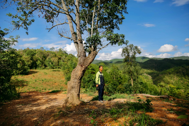 6月15日,云南普洱思茅区六顺镇亚洲象食物源基地(“大象食堂”)内,亚洲象监测员杨忠平正在寻找野象踪迹。