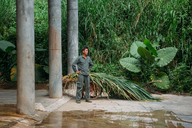 6月17日,中国云南亚洲象种源繁育及救助中心内,“象爸爸”为亚洲象准备食物——象草。