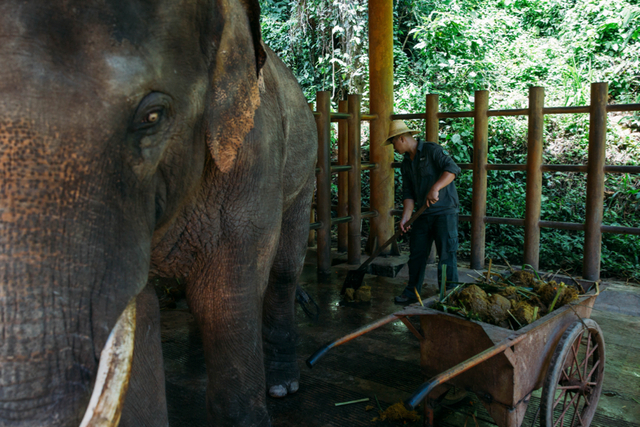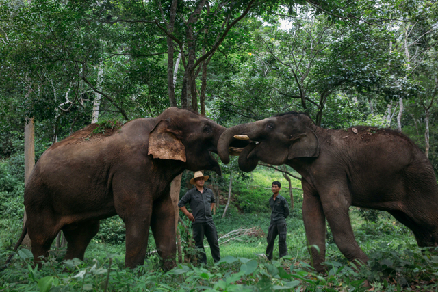 据“象爸爸”介绍,训练时,一头象由两个“象爸爸”照顾,象到哪里,人就到哪里,但人尽量不干涉它们。
