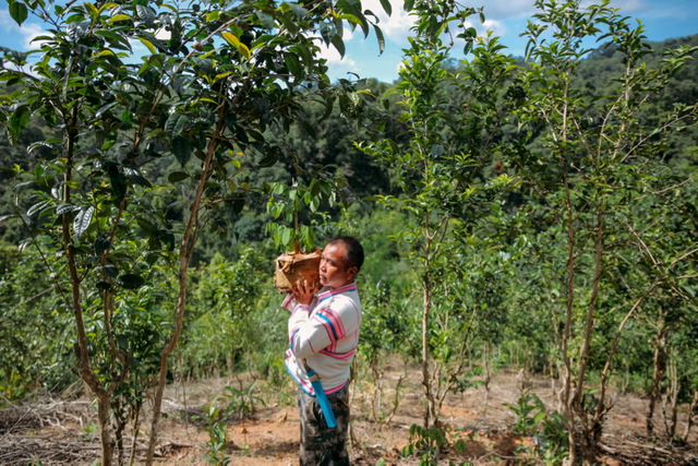 6月21日,云南西双版纳景洪市基诺山,基诺族乡巴飘村村民杰布鲁在一块砍伐后的橡胶地里种植雨林植物小叶紫檀。