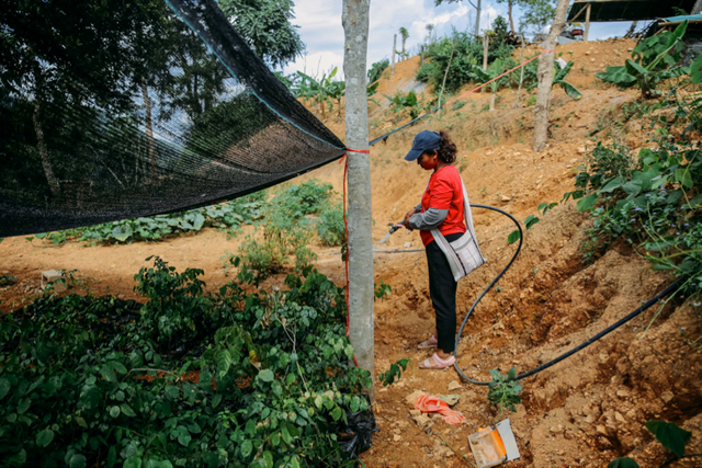 6月21日,云南西双版纳景洪市基诺山基诺族乡,西双版纳热带雨林基金会的试验地里,基诺族乡巴飘村村民布鲁都负责各种雨林植物树苗的培育试验。
