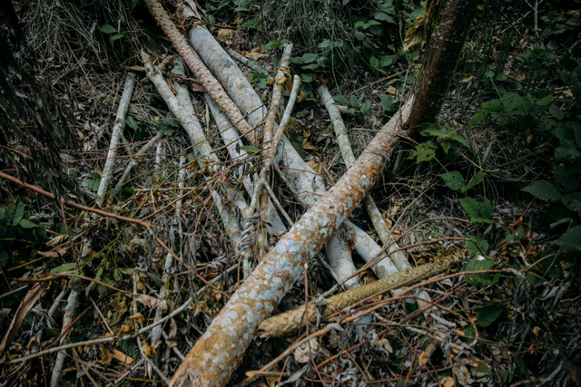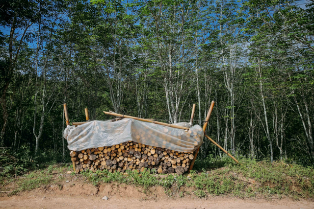 6月22日,云南西双版纳景洪市基诺山,一些被砍伐后的橡胶树统一堆放,它们将被当作柴火。