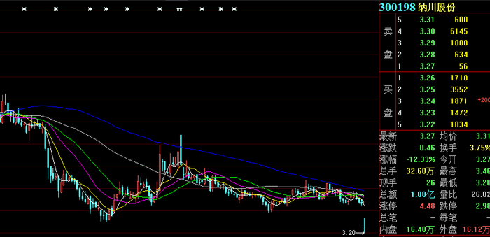7月12日,纳川股份(300198)开盘大跌超10%,股价一度创出3.20元/股的新低。