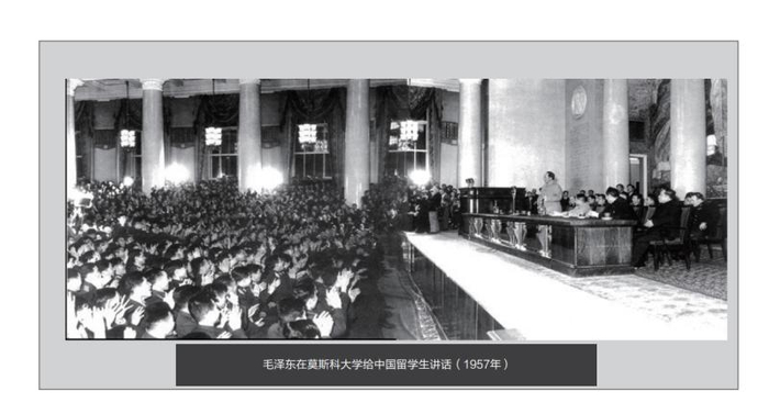 1957年11月,毛泽东在莫斯科专门接见留苏学生。他对大家说:“世界是你们的,也是我们的,但是归根结底是你们的。你们青年人朝气蓬勃,正在兴旺时期,好像早晨八九点钟的太阳,希望寄托在你们身上。”