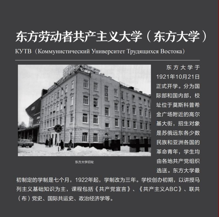俞秀松在参加青年共产国际二大后,也来到东方大学学习,前后共4个月。1923年,我们党又进一步从国内派遣了20人进入东方大学学习。