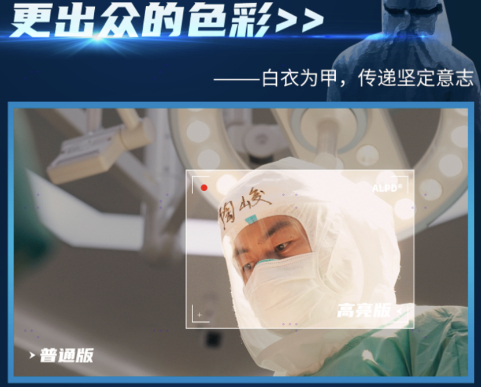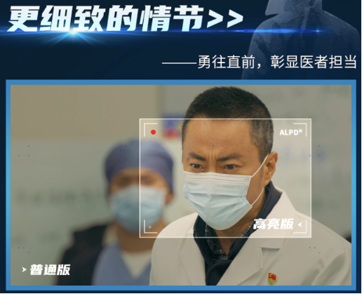 在ALPD®高亮版的《中国医生》中,处处呈现出有质感的细节:脸颊压出血色痕迹条条可见,汗水浸泡过皮肤呈现出来的发白到微微红肿的层层递进,最初城市的灰暗街景、雾气弥漫,医院被冷色调的光线笼罩,直至影片结尾部分晨光下的城市渐渐有了色彩,有了鲜活的颜色,画稿上浓烈的蓝色,小婴儿的淡粉色,这都是属于生命的色彩预示着希望,在ALPD®高亮版更加深刻地展示了每一分色彩带来的碰撞与变化,感悟生命的无限与逆行者的伟大。