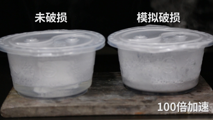 自热锅加热时包装盒变形测试。