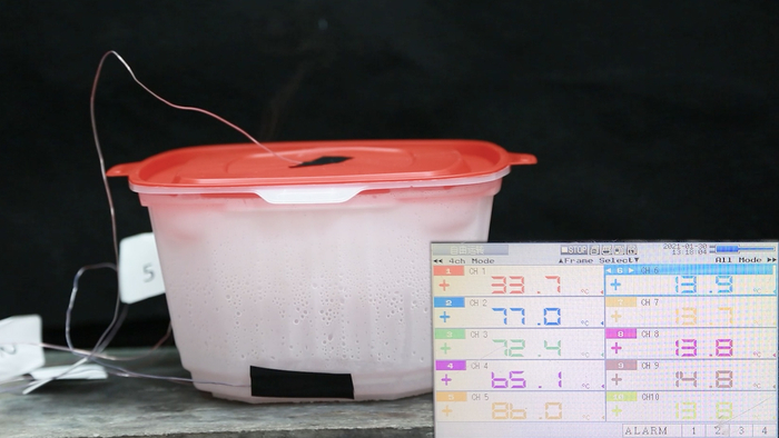 自热锅加热时的温度测试。