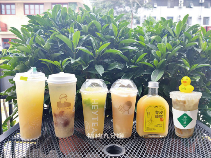 ▲台盖、喜茶、乐乐茶的黄皮饮品