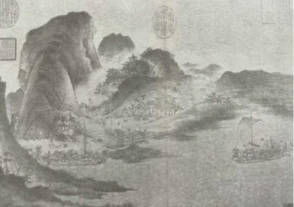 宋《江帆山市图》,山村的市与商船。