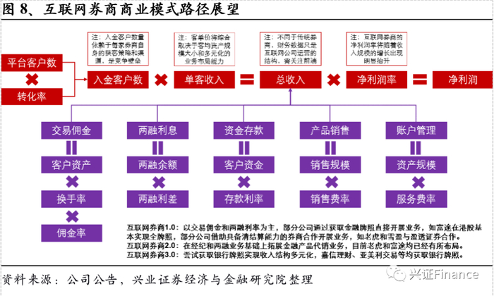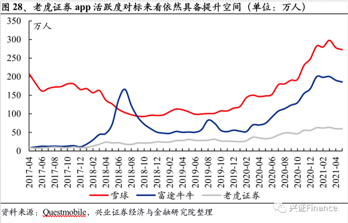 2、 客户的增长无非是两个方面,其一是外延式的并购,海外留存下来的公司无一例外经历了大量外延式的并购。近期德美利交易被嘉信理财并购,亿创理财被摩根士丹利并购,目前嘉信理财和盈透证券是美股市场为数不多的互联网券商。当前国内市场牌照管制依然严格,市场化并购重组暂未形成趋势,但是对于并购依然需要保持乐观态度,高筑墙,广积粮,为后期潜在并购重组机会奠定资本基础。其二是内生式增长,过去三年我们看到能够实现内生式增长的唯有东方财富、富途和老虎,前者存在大量的流量池,后者则通过线上+线下+KOL推广+ESOP等多种手段实现客户增长,其社区运营的经验值得内资公司借鉴。在客户新增和促活层面,内资券商依然有很长的路要走。