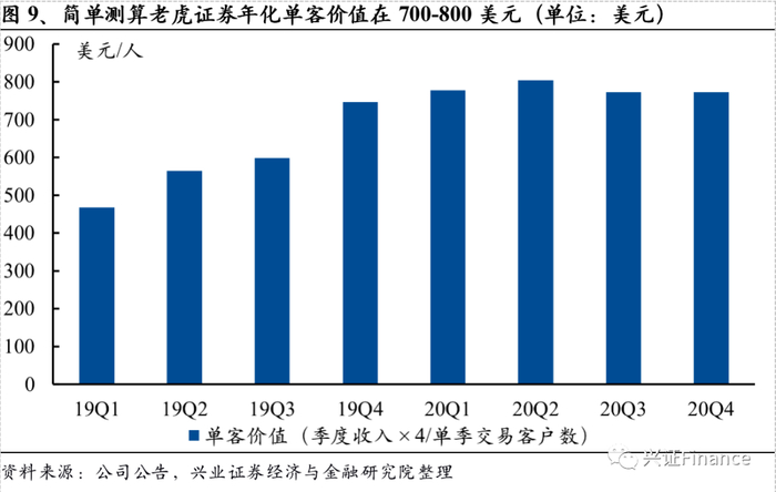 以交易业务为基础,从交易向资产配置实现多元化发展。老虎模式以证券经纪业务起家,交易佣金手续费为公司主要收入来源,同时在经纪业务基础上顺应客户打新、杠杆交易需求开展融资融券业务,利息收入成为继交易佣金手续费之后公司重要的盈利来源;2019年9月,老虎证券为综合账户客户推出“闲钱管家”服务,2020年3月正式进军财富管理业务,推出全新理财功能的基金超市,目前已经形成一站式财富管理服务。展望老虎证券的商业模型来看,我们认为其零售业务盈利增长的驱动力主要来自于两个方面:1)客户数和客户资产的增长;2)客单价的提升。
