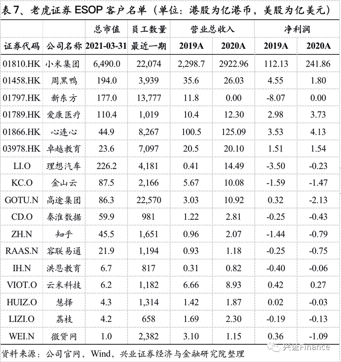 通过技术创新,向更多新经济公司提供全方位、穿越周期的一揽子服务是老虎证券目标之一,ESOP成为其早期服务客户的重要抓手。随着近年来大批新经济企业实施股权激励计划,ESOP管理需求应运而生。ESOP即员工持股计划,指公司提前将部分股份留出激励优秀员工,待上市后股份锁定期结束便可在二级市场自由转让,目前是国际上应用最为广泛的股权激励模式。长期以来市面上传统的ESOP管理服务商存在费用高、服务效率低、系统老化等问题,并且难以开发定制化功能、缺乏APP产品服务,难以满足当前新经济企业及其员工的核心需求。老虎证券自主研发的Tiger ESOP管理系统针对传统服务商痛点进行创新,可支持期权行权、RSU(限制性股票)、员工持股信托、员工购股计划等多种激励计划的管理,涵盖股票交易、数据管理、会计与财务报表等功能。目前老虎已拥有超过100家合作企业,涵盖TMT、在线教育、生物医药、文娱传媒等10多个重点行业,包括小米、跟谁学、比特大陆、爱康医疗、嘉楠耘智等公司。