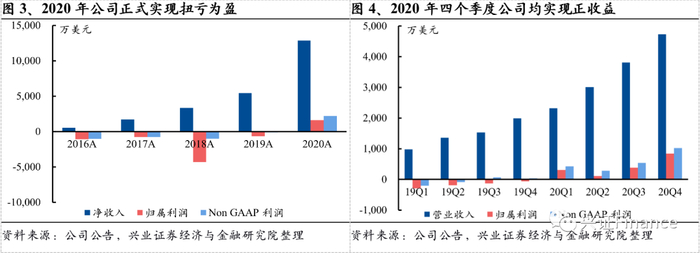老虎证券的收入随着客户资产的快速扩张大幅增长,利润方面于2020年正式实现扭亏为盈。2016-2020年期间,公司的营业收入从548万美元增长至1.38亿美元,年化增长率达到124%,净利润经历了四年亏损后于2020年正式实现盈利,净利润达到1606万美元;2020年分季度看,每个季度的均实现正收益。