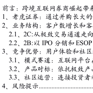 2、盈利大幅波动风险:富途控股2018年全年净利润转正,而老虎证券2020年净利润首次转正,未来不排除跨境互联网券商为业务拓展在研发、员工薪酬、市场营销等方面进行大额投资,对利润带来较大影响;且跨境互联网券商当前主要为客户提供港美股交易服务,若港美股市场出现大幅波动,也将对公司业绩表现带来一定影响;