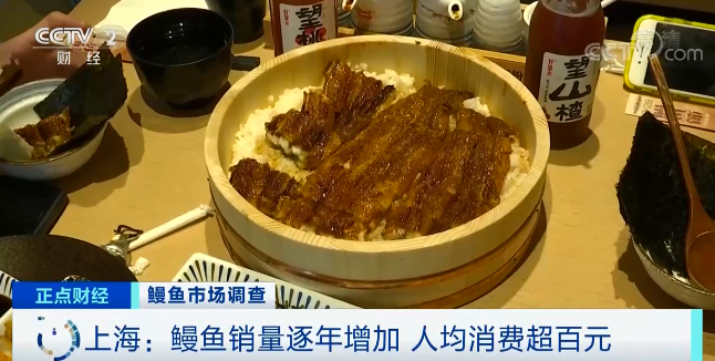 门店负责人告诉记者,他们店主打现杀现烤的鳗鱼饭,一家门店一天能卖出超400碗鳗鱼饭。