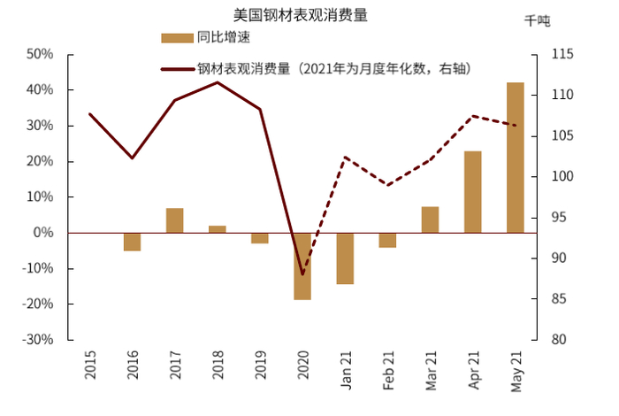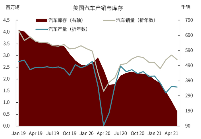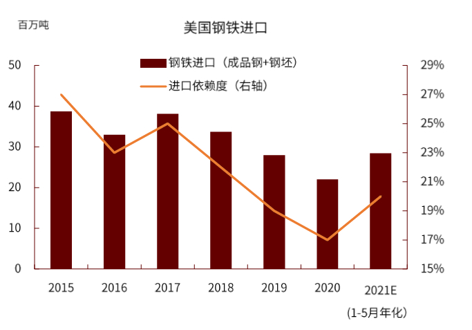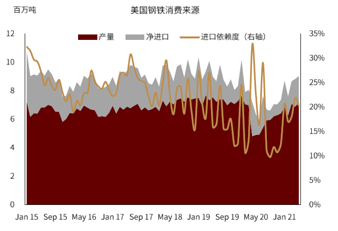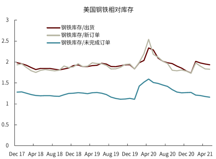 随着供应的逐步修复,供需缺口已得到一定的弥合。但往前看,随着汽车产量恢复与基建方案落地,需求侧可能会有额外增量。而供给侧的价格弹性比较低,短时间内难以匹配需求增量,并且钢材进口政策短时间内也难以出现较大改变。在这种情况下,钢材库存的修复可能尚需时日,供需缺口甚至有可能再次扩大。因而我们预计美国钢材价格可能或将维持在高位。