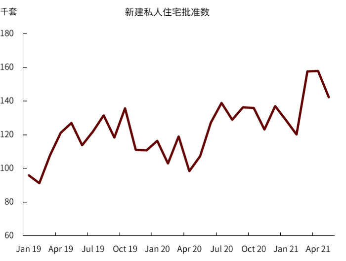 从主要用钢行业的未完成订单来看,短期内下游需求的韧性可能仍将持续。分行业看,机械类消费已显示出一定的边际放缓,但建材类相关的需求仍有上涨空间。美国最近房地产市场较为火热,带动新建私人住宅的批准数量也节节攀升。虽然传统上美国私人住宅的用钢相对较少,但我们预计钢消耗强度更大的基建项目的投入将持续增加,从而利好钢材消费。